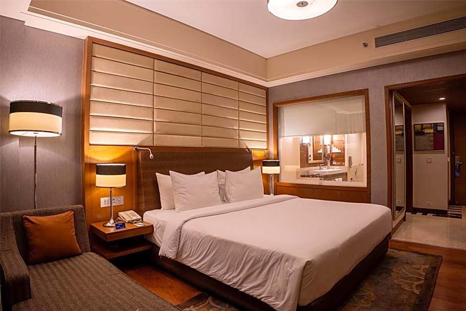 Fitted with carpeted flooring, this spacious air-conditioned room comes with a flat-screen TV, personal safe and mini-bar.